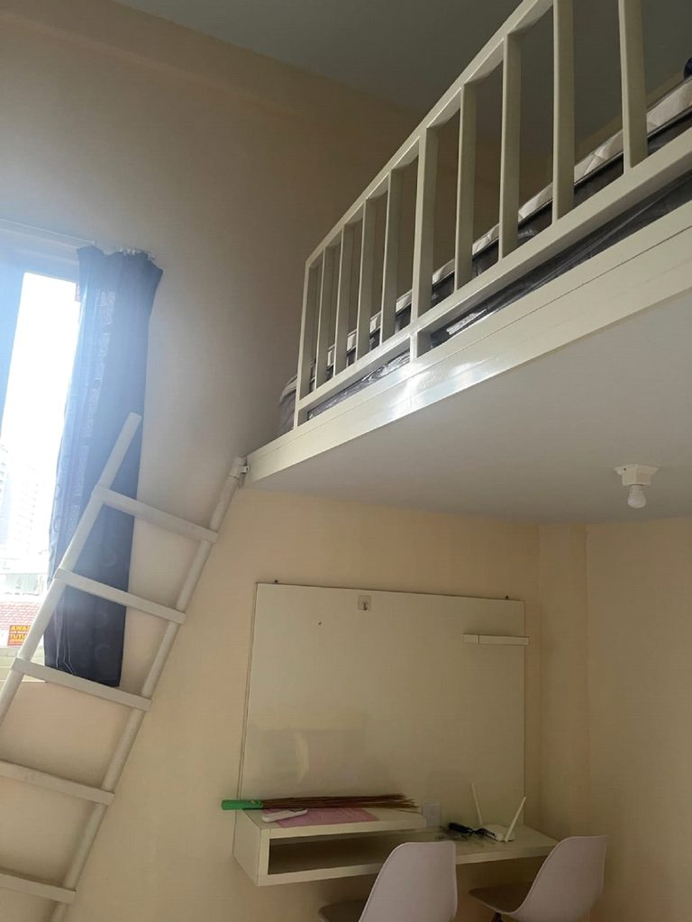 Masih di lantai satu, ada ruang tamu, mushola, toilet dan customer service yang menyambut para penghuni kost dan tamu kost. Sambutan hangat layaknya di hotel atau apartemen kan. Nuansa apartemen ini lebih terlihat di dalam kamarnya yang sudah ada kamar tipe mezzanine, kamar mandi dalam dan dapur mini. Lengkap dengan kitchen set dan kompor.